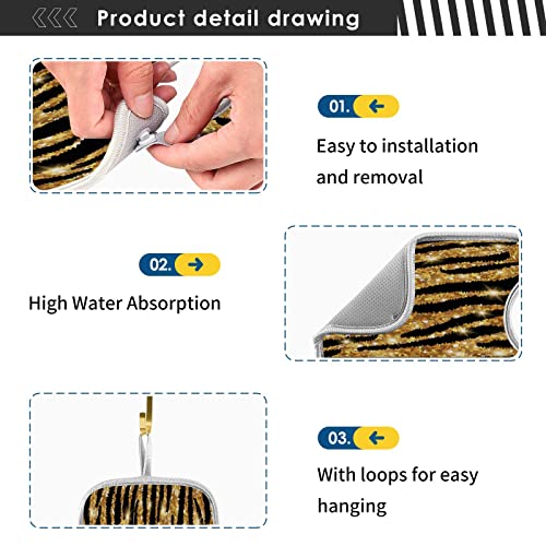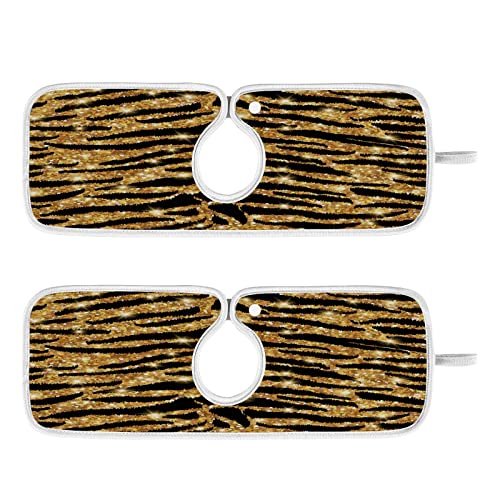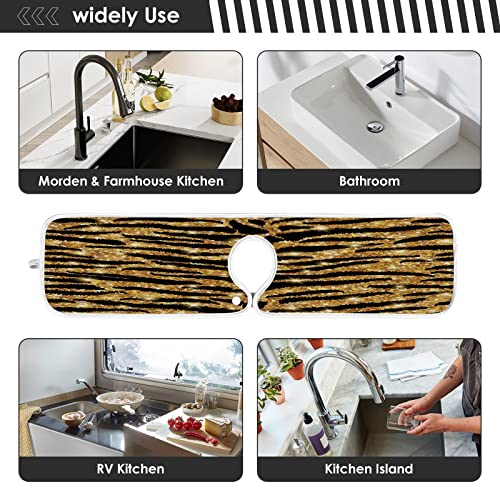 2 Pack Kitchen Faucet Mat Absorbent Washable Sink Splash Guard Kitchen Faucet Drip Drying Mat Kitchen Gadgets Small 14×5 inch Tiger Gold Trendy Pattern