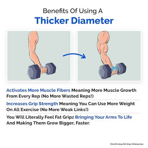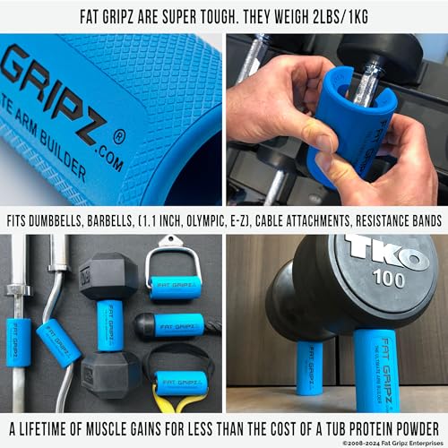 BUILD ARM SIZE AND STRENGTH – Fat Gripz will help you build bigger, stronger arms. They work by wrapping around barbells, dumbbells, pull up bars and exercise machine handles and increasing their diameter